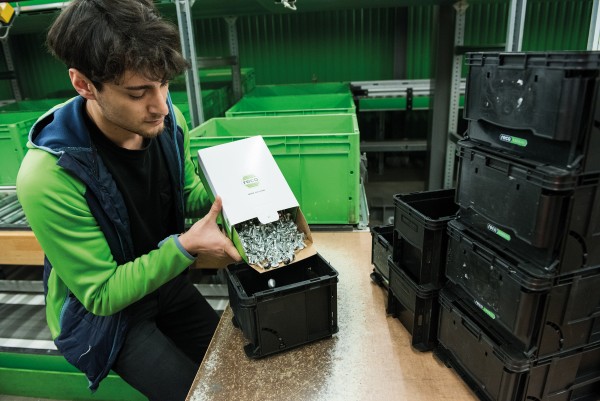 Je nach Füllstand des Behälters wird automatisch eine Bestellung generiert und die Ware in Folge beim Behälter am Arbeitsplatz nachgefüllt.
